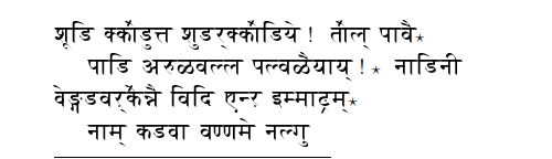 हे गोदा देवी! आप दामिनी के सदृश अंगकान्ति वाली हैं! आपने उस माला को, जो श्री रंगनाथ भगवान के लिए थी, पहले स्वयं पहना तथा उसके बाद उसे श्री भगवान को प्रदान किया | काव्य कला में निपुणता से आपने सुप्रसिद्ध एवं प्राचीन तिरुप्पवई की रचना करी | कई सुन्दर कंकणों से विभूषित हे श्री गोदा देवी! हमपर अपनी करुणा दृष्टि करिये जिससे हम उसी तीव्रता से श्री कृष्ण में प्रेम रखें, जिस तीव्रता से आपने कामदेव को कहा था, “हे कामदेव! कृपया प्रसन्न हों और मुझे वेंकटगिरि के प्रभु की दुल्हन व दीन दासी बना दें ! ”