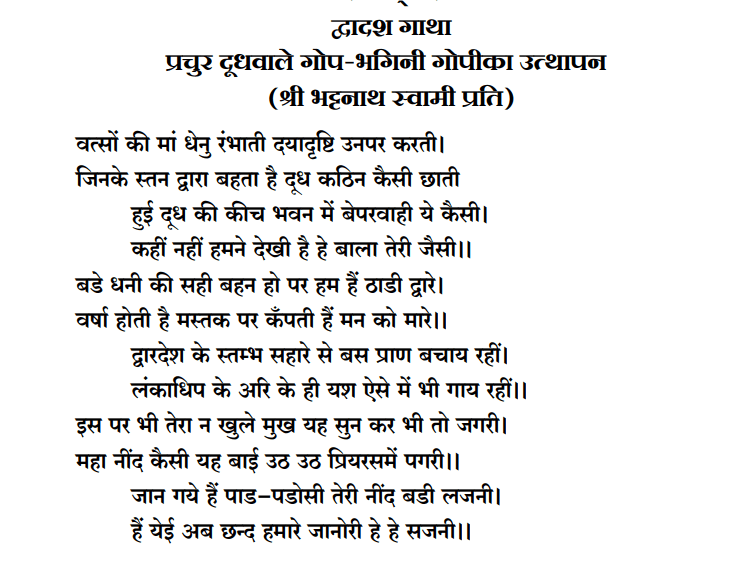 चूँकि गोप कन्हैया की सेवा में गया है, गायों को दूहने वाला कोई नहीं है। गायों के थान कठोर हो रहें हैं और वो दूहे जाने हेतु जोर जोर से आवाज कर रही हैं।