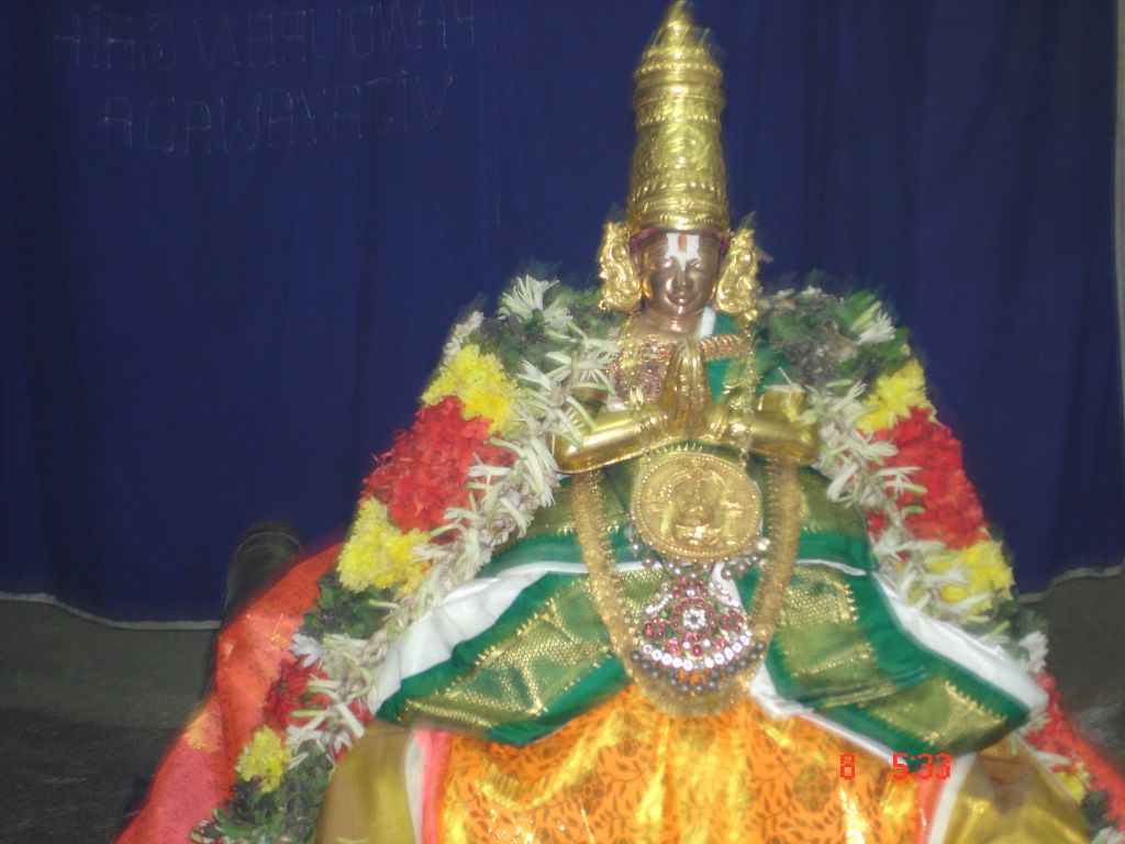 यः नित्यम्- अच्युत – पदाम्बुज – युग्म-रुक्म- व्यामोहत : तद् – इतराणि-तृणाय मेने, अस्य भगवत: दयैक सिन्धो: अस्मद्गुरो: रामानुजस्य चरणौ शरणं प्रपद्ये ।