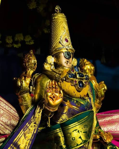 अर्चा रूप में भगवान भिन्न-भिन्न वाहनों में गली-गली घूमकर, सभी को अपना कटाक्ष प्रदान करते हैं, बिना किसी रंग, वर्ण के भेद के। यह उनका सौशील्य है।