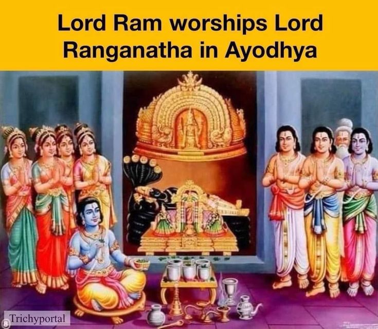 सूर्यवंश में अनेक राजाओं से होते हुए रंगनाथ भगवान का सेवा-पूजा भगवान श्री राम तक आया| भगवान सीता के संग अपने ही अर्चा रूप की अराधना करते हैं|