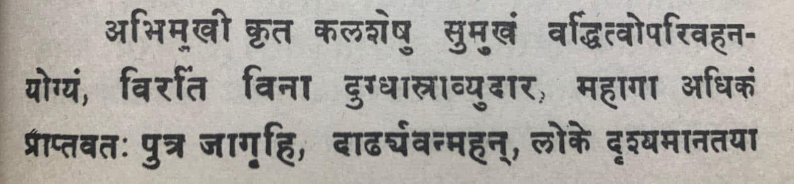पात्र थन के नीचे रखते हीं दूध से पूर्ण हो जाते हैं। दूध दूहने में तो कोई श्रम नहीं है, किन्तु पात्र उठाने और बदलने में ग्वाले थक जाते हैं।
