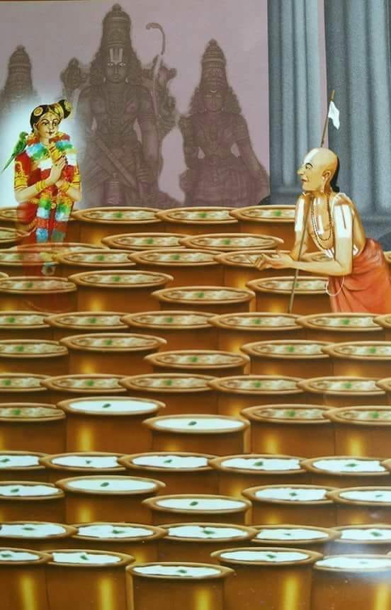 चावल यदि जीव है तो दूध भगवान के कल्याण गुण। उसके ऊपर तैर रहा घी हमारा उमड़ रहा प्रेम है। दूध और चावल अर्थात ब्रह्म और जीव एक दूसरे का इस प्रकार आनन्द ले रहे हैं कि एक-दूसरे से सायुज हो चुके हैं।