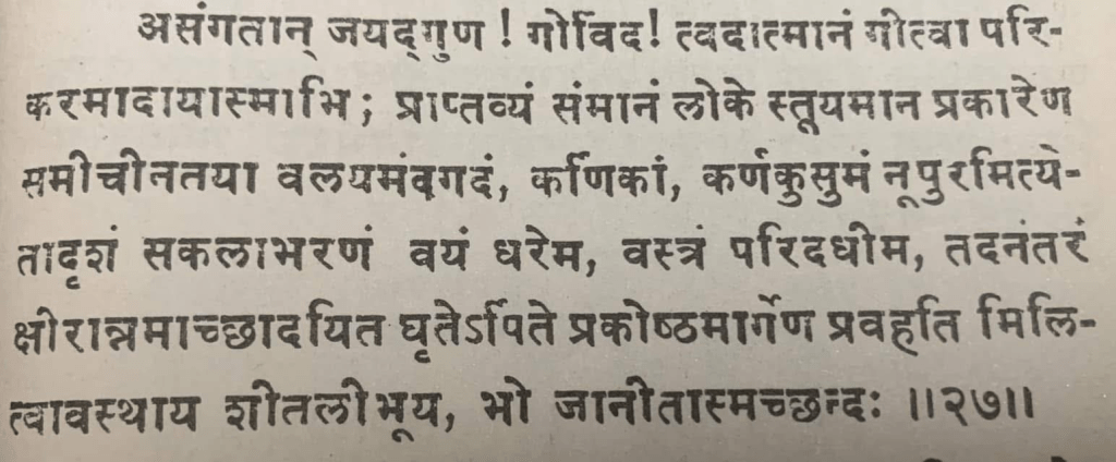श्री उ. वे. भरतन् स्वामी द्वारा अनुगृहीत 27वीं गाथा का संस्कृत छन्दानुवाद: