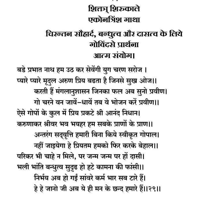 अथवा पूर्व में अनन्यार्ह शेषत्व का निवेदन कर चुकी हैं। 28वीं गाथा में अनन्य शरणत्व और आज की 29वीं गाथा में अनन्य भोग्यत्व का प्रकाशन करती हैं।