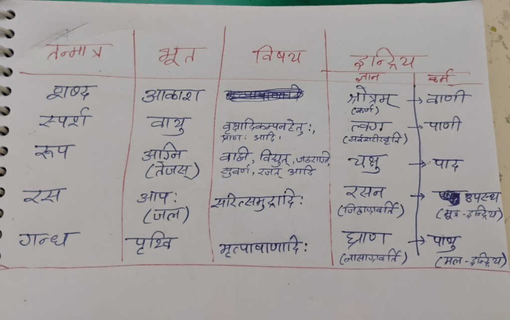तन्मात्र के सहयोग से ज्ञानेन्द्रियों की उत्पत्ति